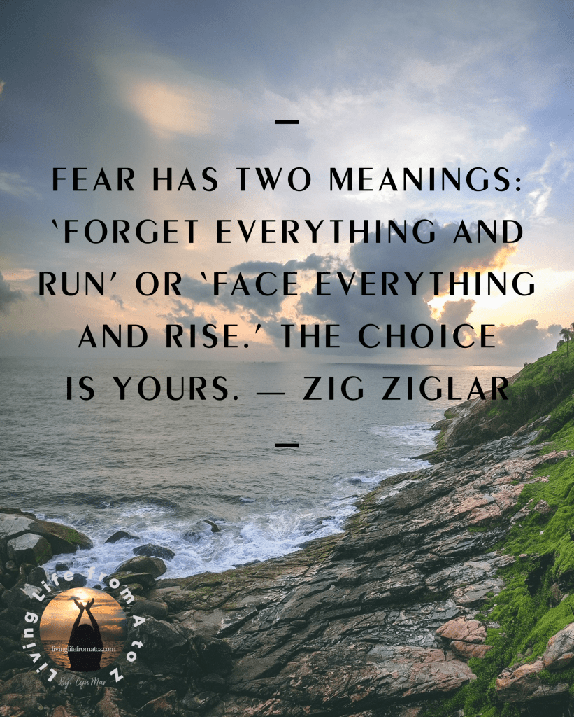 Fear has two meanings: ‘Forget Everything And Run’ or ‘Face Everything And Rise.’ The choice is yours.